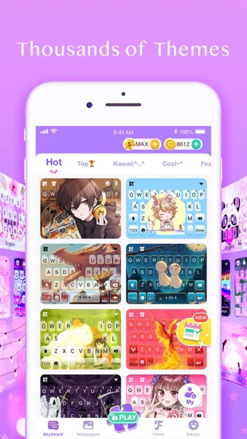 2.Customize your keyboard with 10000+ stylish and new themes, added weekly!