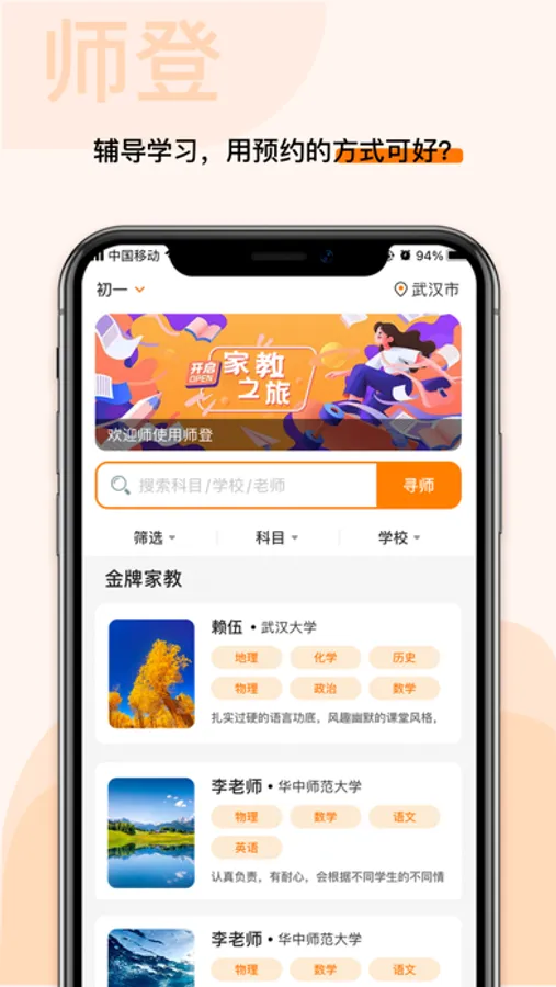 【师登】APP将全面开启线下家教新模式,精准匹配用户群体,是国内首个依托重点师范大学教学科研力量打造的家教伴学预约平台。
