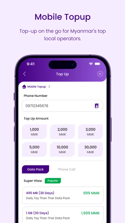 Top up: Stay connected with your friends and family by topping up your phone balance and purchase data packages for every major Myanmar Mobile Operator. Bill payment: A PLUS bill payment bring you the most convenience experience in paying your Internet bills, and many more.