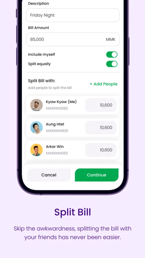 Split Bill Payment: Skip the awkwardness while paying QR payment with friends and family, by instantly dividing the bill with other A PLUS users.