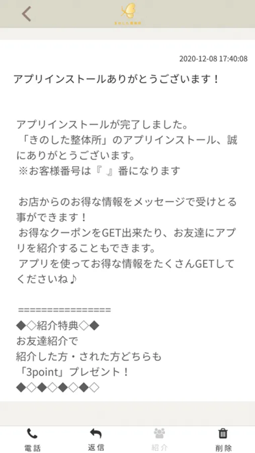 きのした整体のアプリをSNSを通じてお友達に紹介する事ができます。