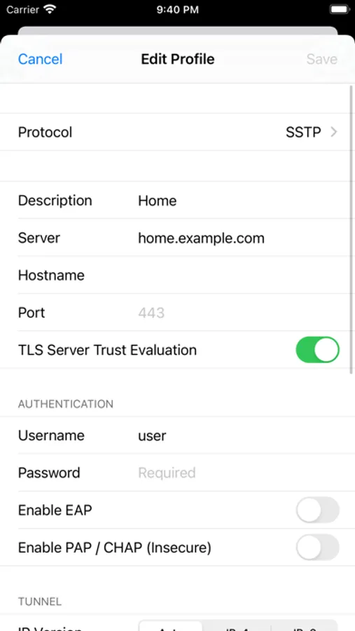 Passwords and certificates are stored in the iOS keychain. SSTP Connect never saves them locally for convenience.