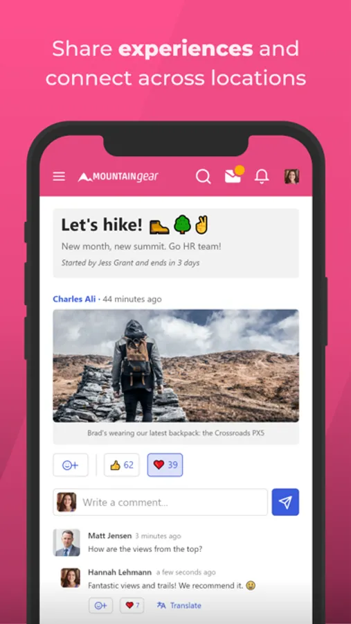 Boost employee engagement and, with that, employee happiness and productivity. Employees post Stories and send Messages to connect across locations, share experiences and socialize.