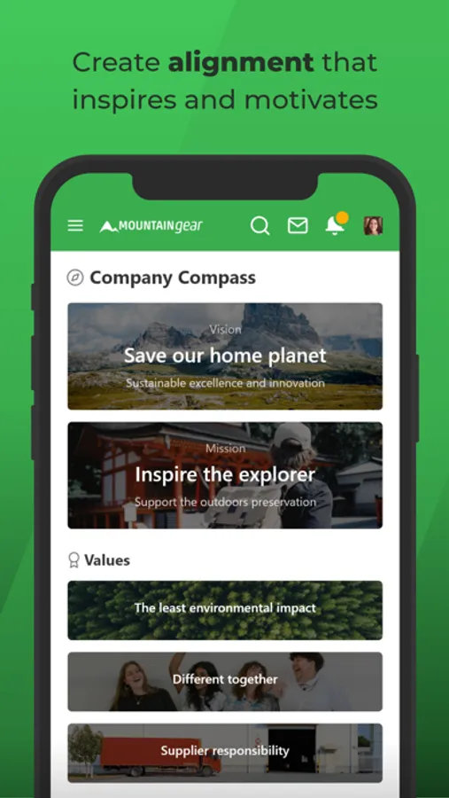 Amplify the corporate culture and values across the board. Use ahead's Company Compass to communicate your vision, mission, values and goals to a committed workforce.