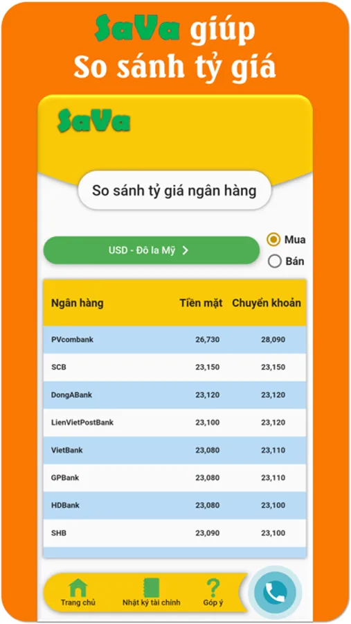 Ứng dụng SaVa giúp cho người dùng tra cứu các thông tin tài chính liên quan đến các dịch vụ