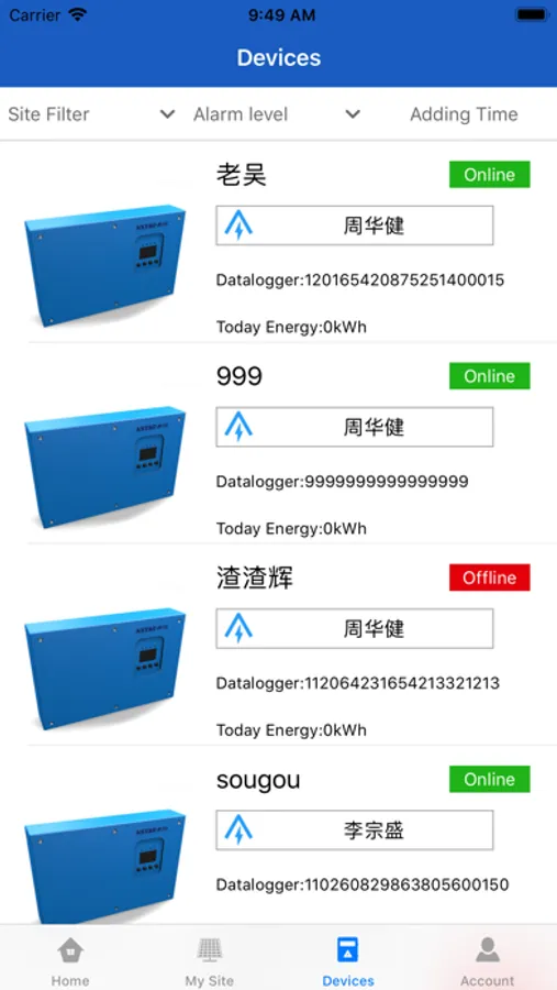 K-HEMS APP是由深圳科士达科技股份有限公司专门为光伏发电储能开发的移动应用,具有光伏电站运行状态展示、设备故障报警、简单数据查询以及电量统计等功能。通过APP,电站管理者可以实时掌控名下的光伏储能电站的发电信息、电站收益、设备故障情况。节能减排情况等。
