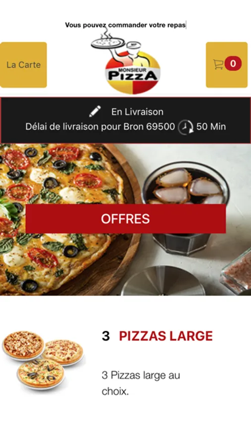 L'application Monsieur Pizza vous permet de commander en ligne ou par téléphone via votre application. Vous pouvez consulter notre carte et choisir vos produits.