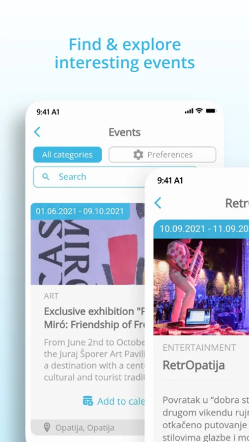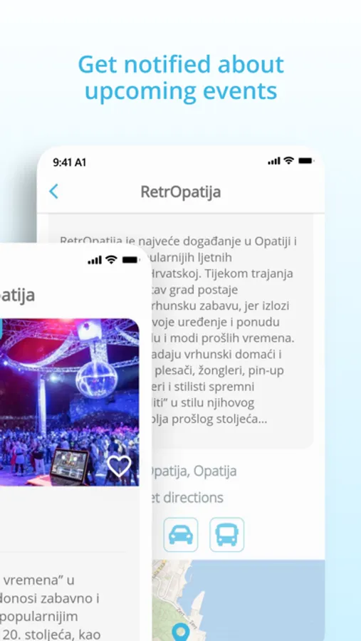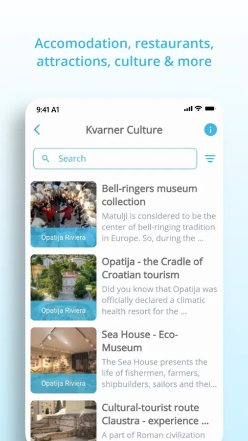 • Events - With the Visit Kvarner App it is almost impossible to miss events in Kvarner. Find events by regions, categories or according to distance from your current location. Save events to favorites, and the app will remind you before it starts! In addition to the option to save favorite events, it is also possible to add them to the personal calendars.
