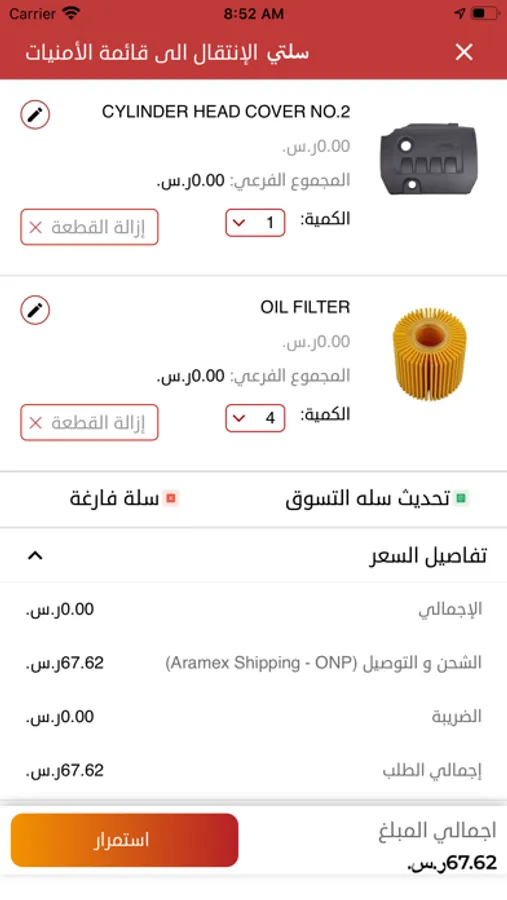 • اضف إلى قائمة الأمنيات: بلمسة واحدة يمكنك إضافة منتجات قطع الغيار و الاكسسوارات التي تتمناها إلى قائمة الأمنيات.