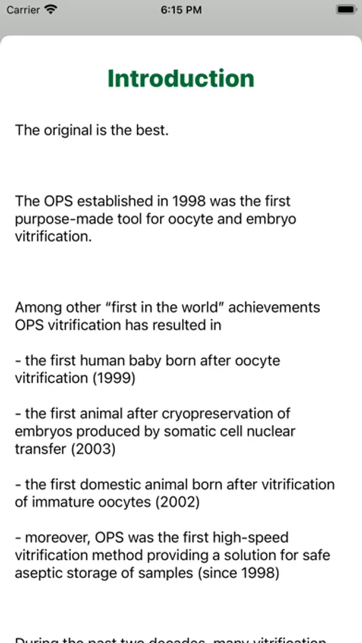 This App combines graphic instruction and video to demonstrate OPS system with good interface and process operation. It includes preparetion, use method, time function and precautions when using Open Pulled Straw (OPS) for vitrification.