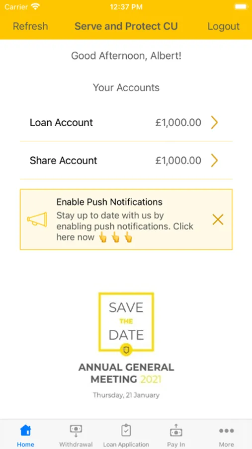 Welcome to your Serve and Protect Credit Union mobile app. Allowing you to access your account 24/7, apply for a loan, view your balance, withdraw funds, keep up to date with the credit union and more!