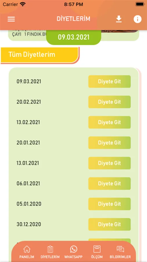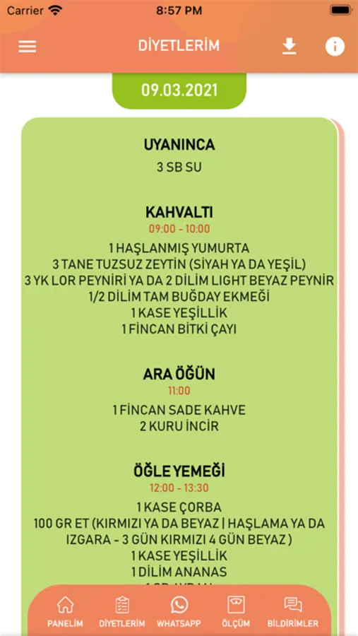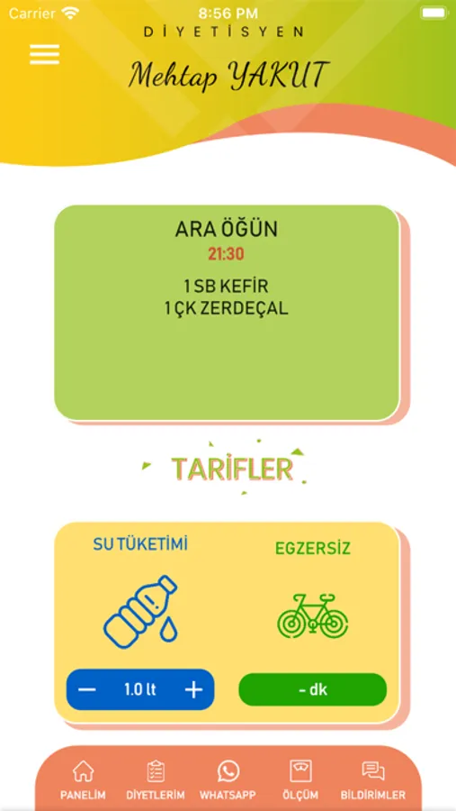 Bu uygulama sayesinde öğünlerinizi kaçırmadan programınızı tamamlayabilirsiniz. Uygulama her bir danışana özel olarak beslenme ve öğün saatlerini bildirim olarak yollayacaktır.