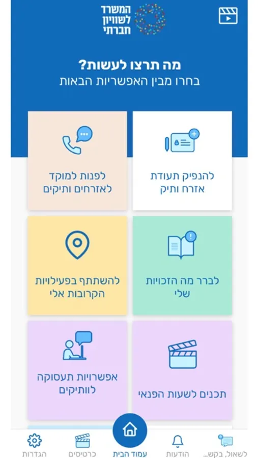 המשרד לשוויון חברתי פועל בשנים האחרונות לשפר, להרחיב ולהנגיש את ערוצי השירות העומדים לרשות אוכלוסיית האזרחים הוותיקים.