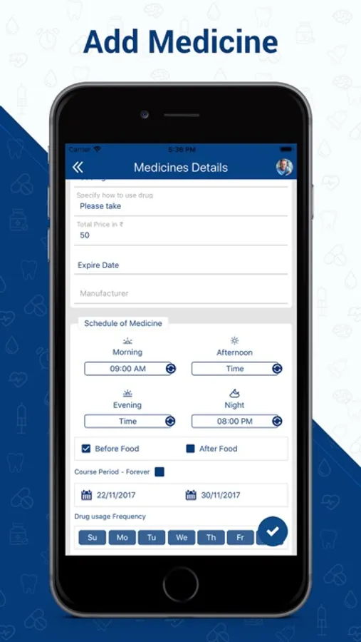 You can add prescribed medicines by your doctor and set a reminder to take them, including other related information.