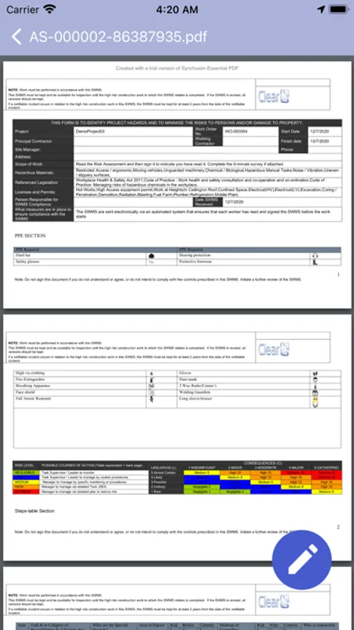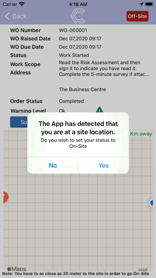The App does not track the worker or the mobile device but only uses the location services to match when a user is at a work location. This information is used by the system to raise alerts if the user is on-site but has not signed the documents or completed the survey within a user configurable time limit and so could be breaching work and safety risk guidelines.