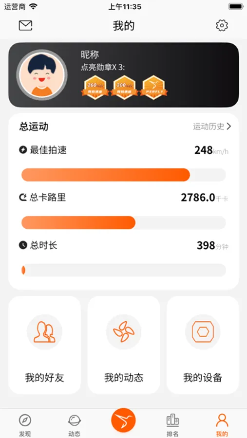 智能球拍APP.用以记录日常羽毛球运动,记录挥拍速度,运动消耗,以及运动评分
