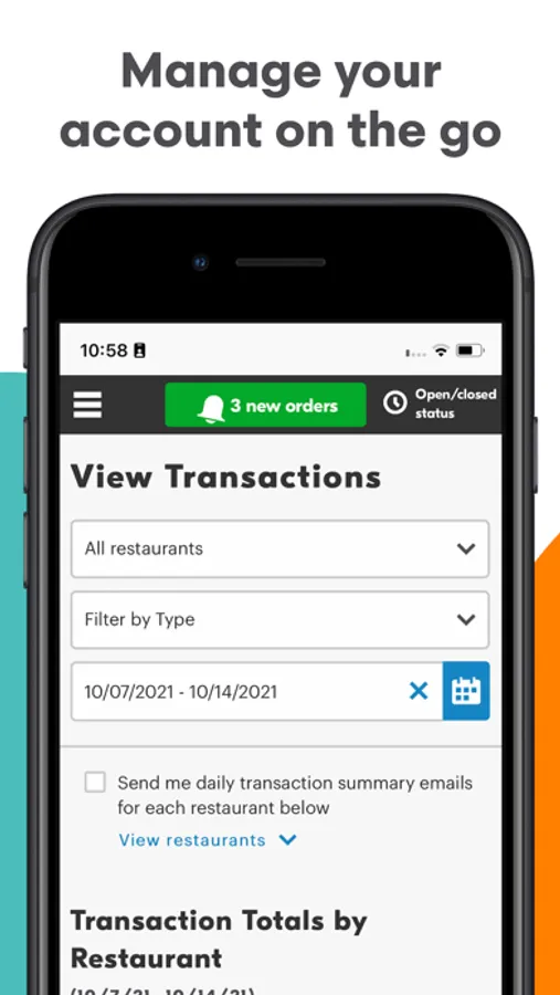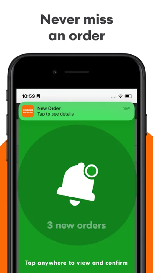 • Never miss an order: Food delivery? Takeout? You name it. Instantly get new order notifications directly to your phone or personal tablet.