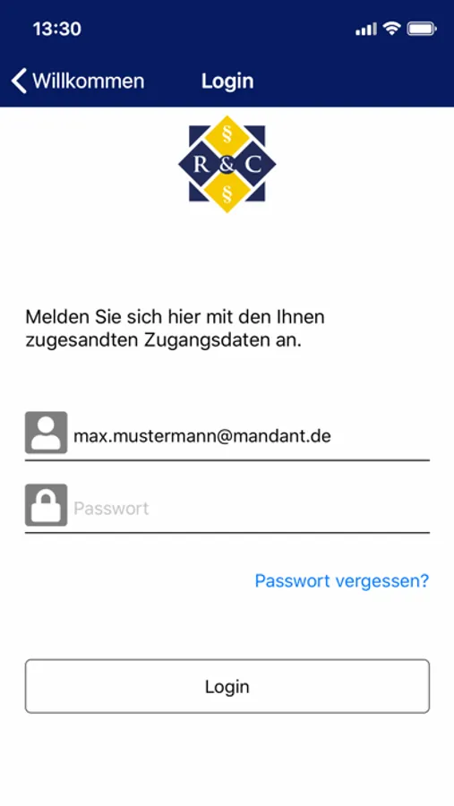 Die Zugangsdaten zur App erhalten Sie von der Röper & Collegen - Steuerberatung.