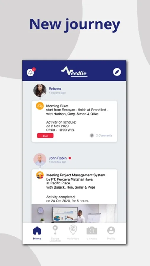Needtle app will keep user's activities such as sports activity, office activity, and fun activity. Invite people in user's activity as participant's activity and track the nearest location of each participant when they are in around activity place
