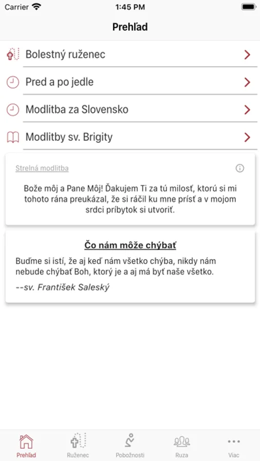 Každý deň sa v aplikácii zobrazujú modlitby, na ktoré by sme nemali ako správni kresťania zabúdať.