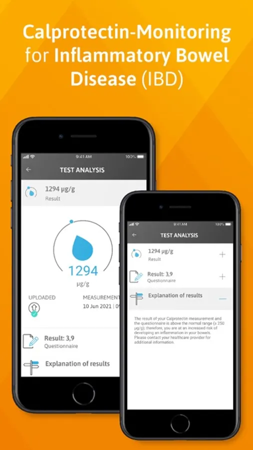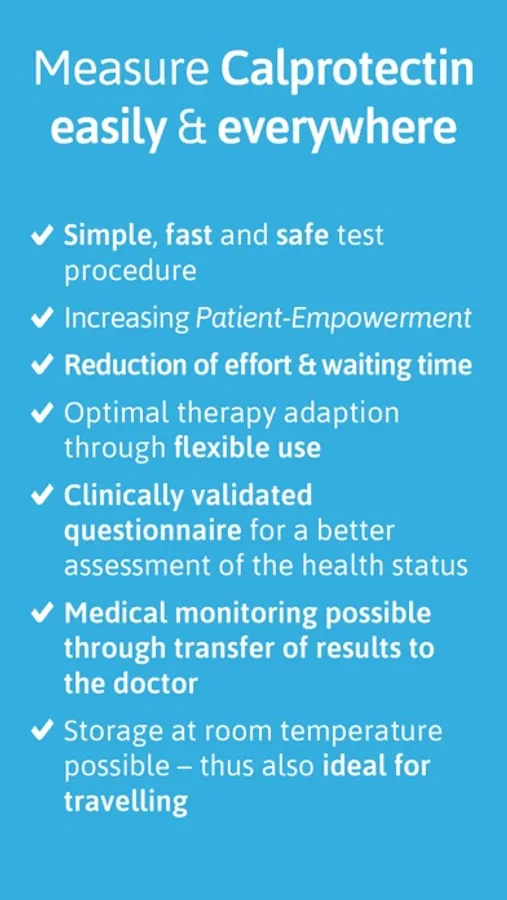 Reliable and simple app for quantitative determination of calprotectin in stool for in vitro diagnostic use.