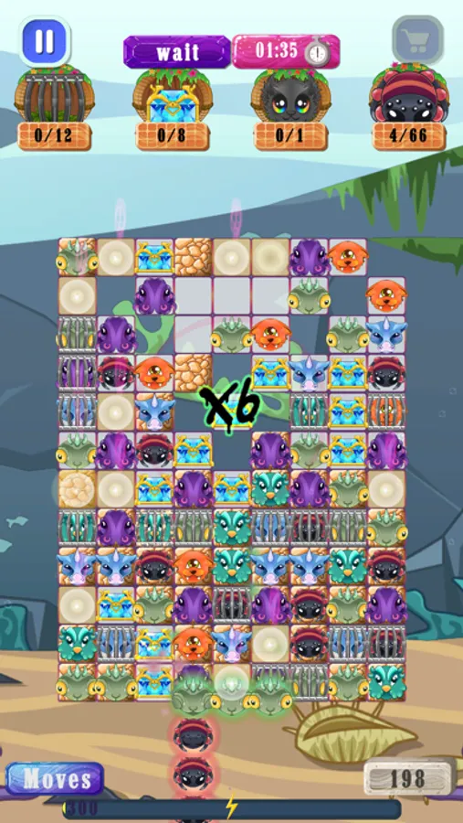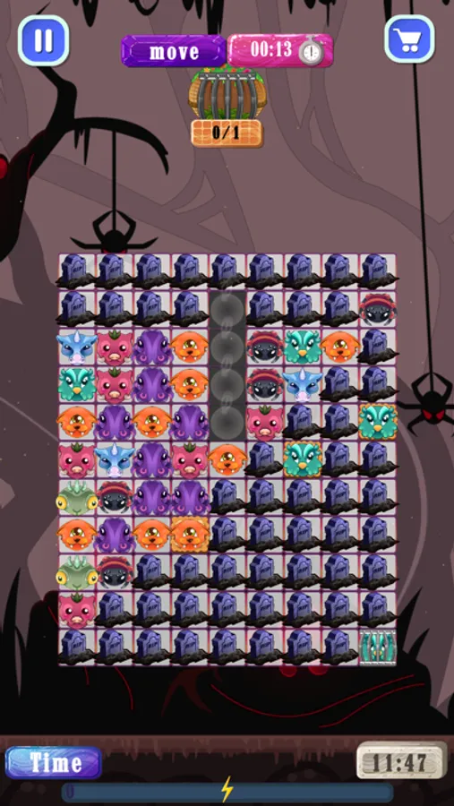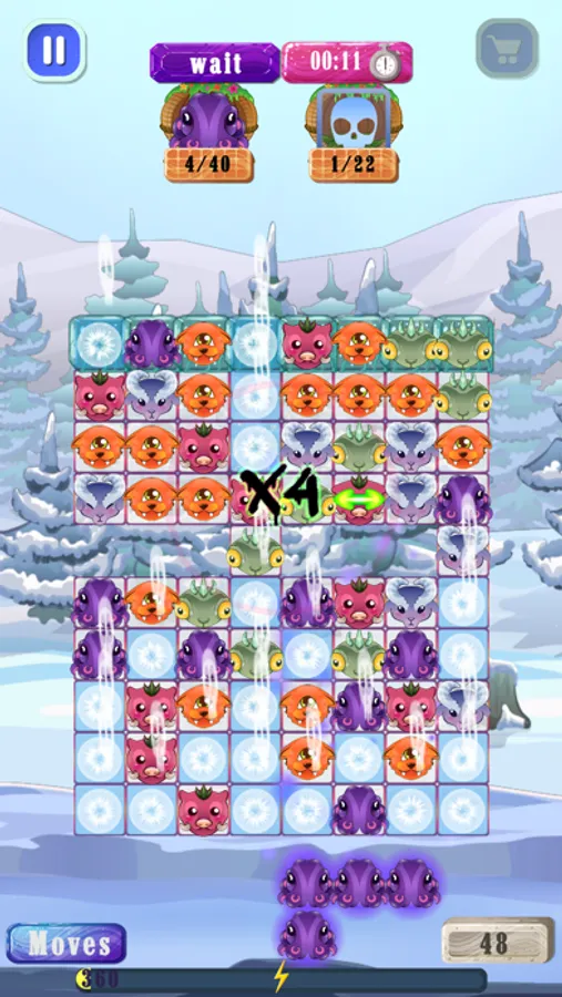Match 4 monsters to create special row or column bomb. These bombs can make a blast to liberate all monsters in a row or column.