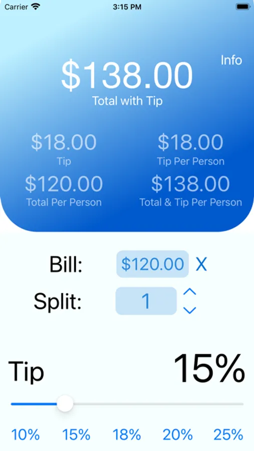 Tip Sense calculates the tip amount and combined total and tip amount based on the bill and tip percentage