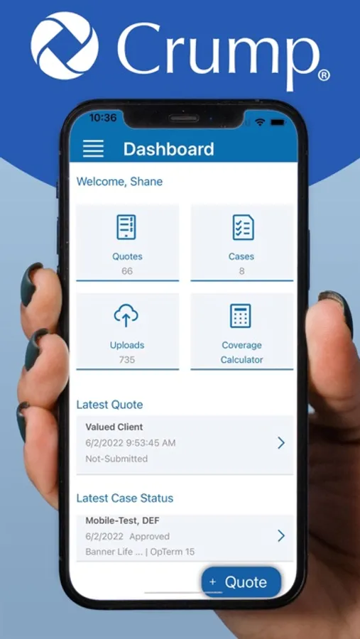 Selling life insurance just got easier. Powered by Crump Life Insurance Services, our mobile app has the same quoting functionality that you are used to with the added benefit of being integrated with our Crump systems, including: