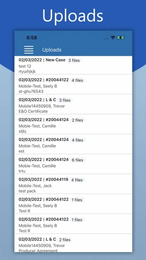 • Upload files for a new case, an existing case, or licensing & contracting documents