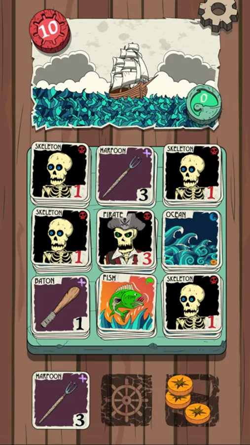 - 10 different SEA CARDS to sail using LUCK or TOKENS