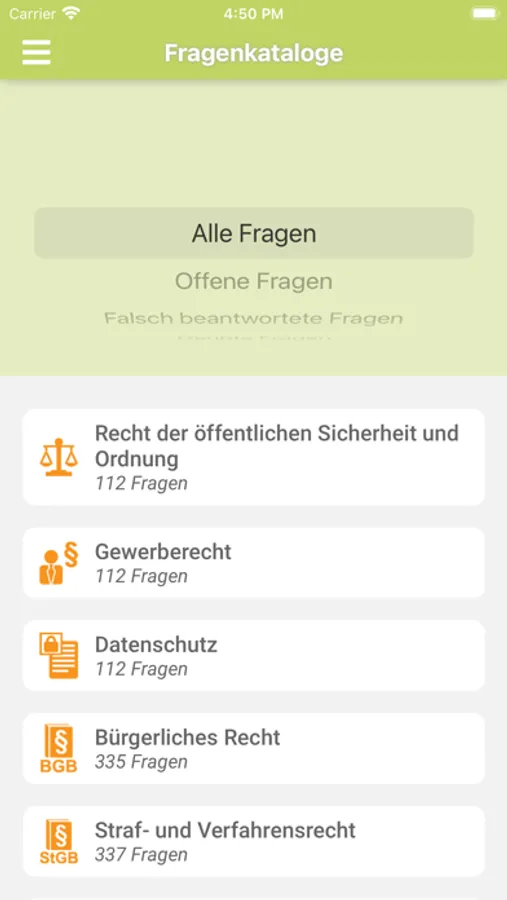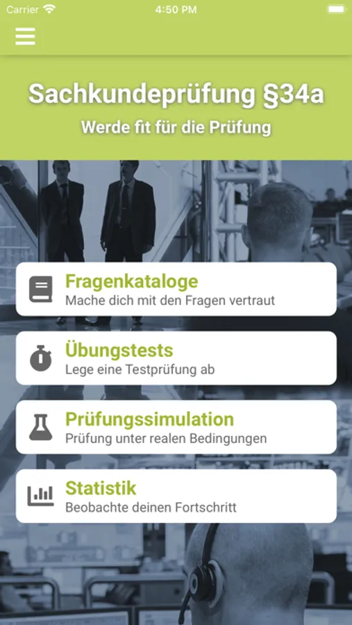 Mit Hilfe unserer Karteikarten lernst Du über 1500 Fragen aus 9 Fragenkatalogen, bevor Du Dein Wissen mit über 50 Übungstests noch einmal auf die Probe stellst, um Dich schließlich der ultimativen Herausforderung zu stellen - unserer Prüfungssimulation. Deine Leistungen kannst Du mit Deinem Ausbildungsleiter, Deinen Kollegen und Freunden teilen. Behalte stets Deine Leistungen mit unseren Statistiken im Blick. So meisterst du die Sachkundeprüfung!