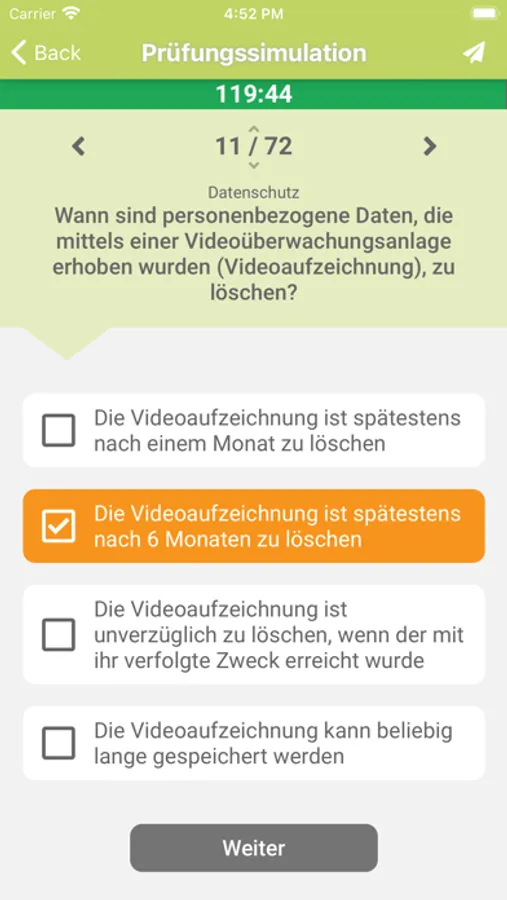 Dich erwarten über 50 verschiedene Übungstests aus den prüfungsrelevanten Fragenkatalogen nach §34a GewO. Du erhältst während eines Übungstests direktes Feedback zu Deinen Antworten.