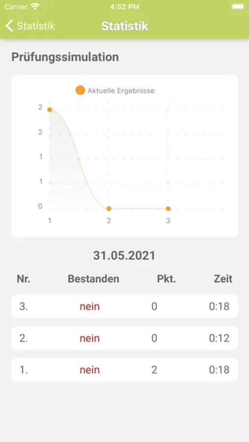 Alle Fragen, die Du beantwortest, fließen in deine Statistiken ein. Wir bieten dir eine Übersicht aller abgeschlossenen Übungstests, Prüfungssimulationen und eine Zusammenfassung aller beantworteten Einzelfragen aus den Fragenkatalogen. So bleibst du am Ball und kannst leicht deine Stärken und Schwächen identifizieren, um dich gezielt auf die Sachkundeprüfung vorzubereiten.