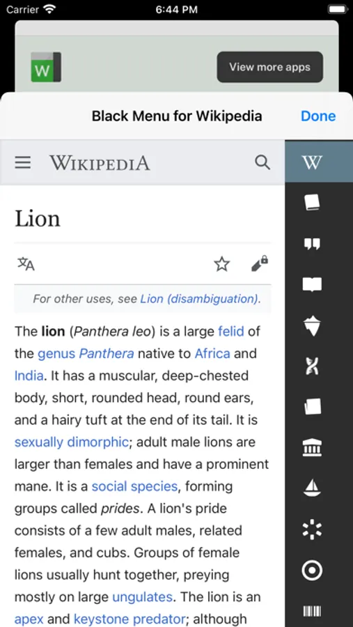 Black Menu for Wikipedia lets you access the best of the Wikipedia Universe, in a simple, easy, and convenient way.