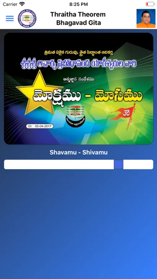 Writer: The only Guru of three religions(Hindu, Muslim, Christian), The Emperor of Spiritual Kingdom, The writer of more than hundred divine holy books, Indu Gnana Dharma Pradata, The Sensational Writer, Adi Karta of Traita Doctrine , Sri Sri Sri Acharya Prabodhananda Yogeeswarlu