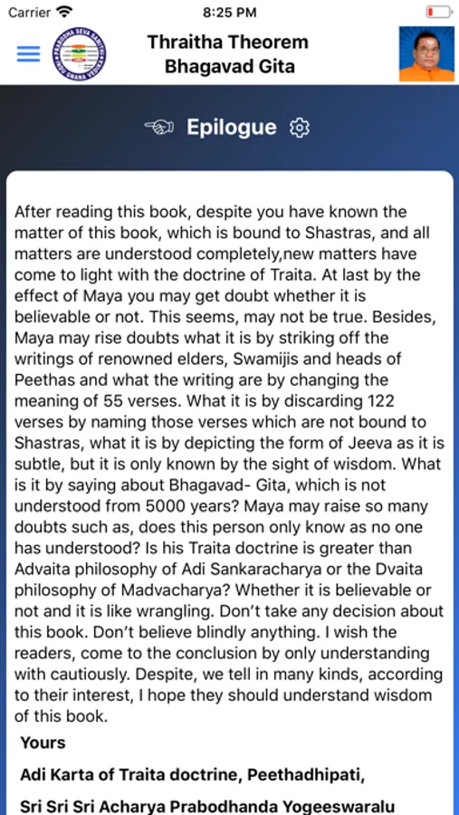 This Thraitha Siddhantha Bhagavad Geetha reveals us the great Divine Theorem called “Thraitha Theorem”. By reading this “Thraitha Siddhantha Bhagavad Geetha”, one can gain the real notion of “Bhagavan Sri Krishna” and will find the path to attain the Liberation.