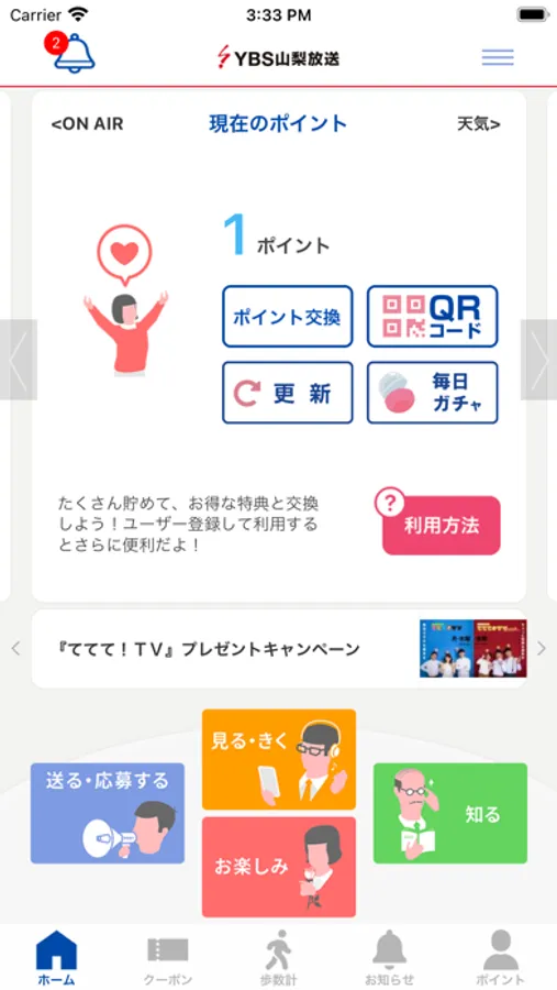 ・ポイント機能 毎日のアプリ起動や番組参加などでポイントが貯まります。
