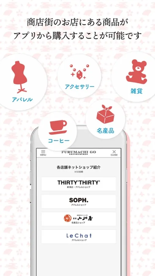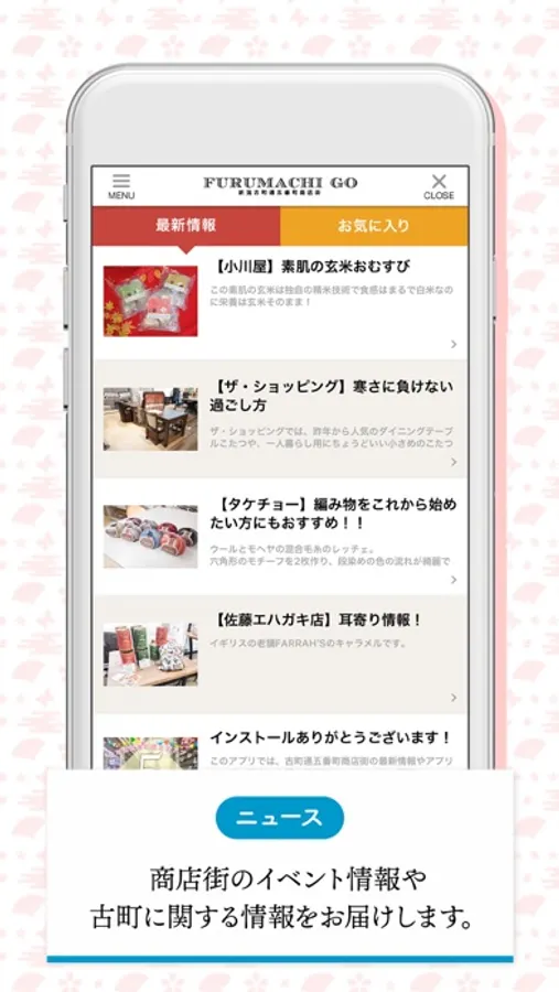 <古町通5番町商店街アプリの 便利な機能をご紹介!>
