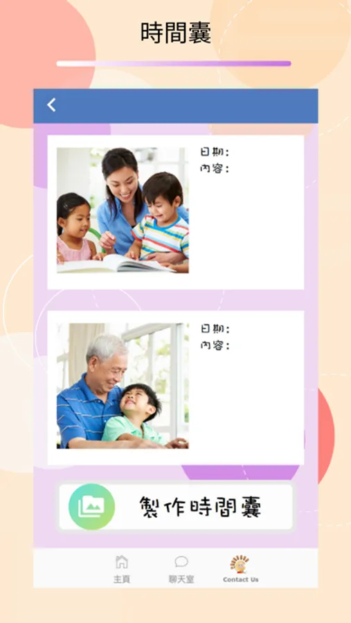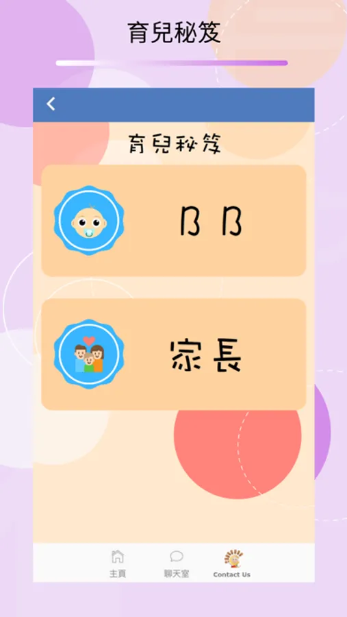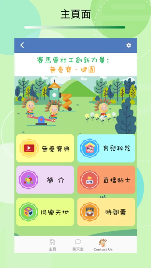 功能包括 : 無憂寶典、育兒秘笈、同樂天地、簡介、時間囊、直播貼士