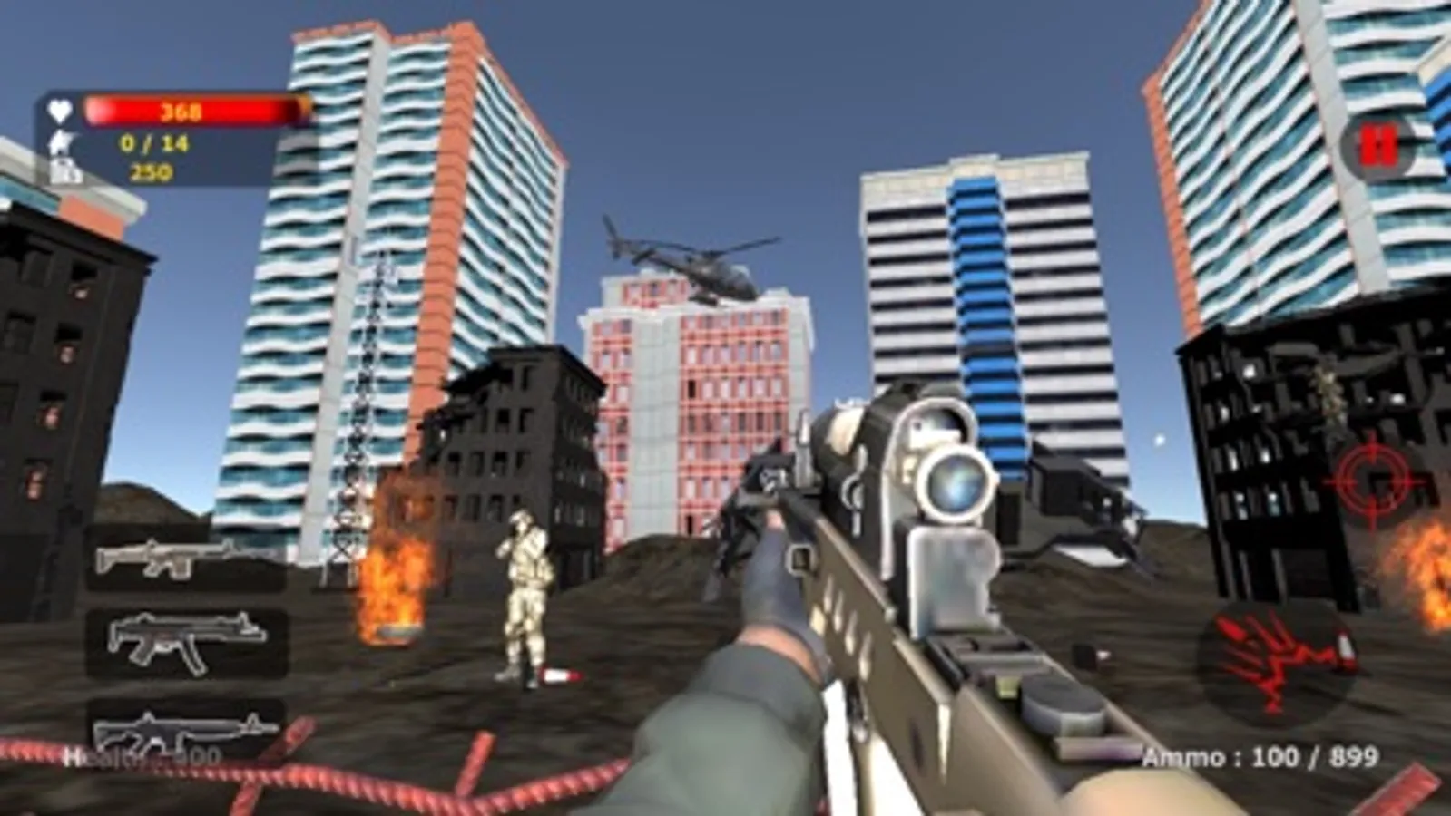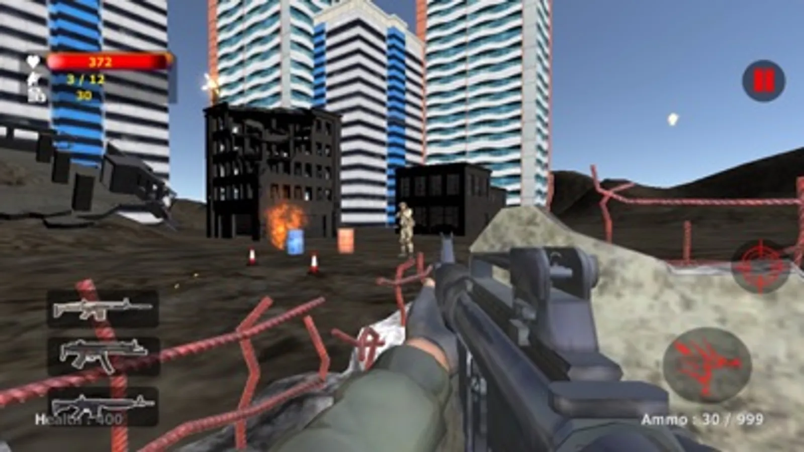 If you are searching and fond of new shooting games then you've came to the right place. Today we are on a place of war with every one and as a real commando its your duty to stand on frontline and defend your country. In this game you can learn about the weapons used in the war and also there is a training session for new commers to learn about firing and distances required to fire with a specific gun. After that you will be fuklly trained and will get a mission in the game where you have to survive and defeat the enemy with the help of your training. If you survive in this 3d sniper shooting game than you will easily beat you enemy and can destroy their bases with the amunation which you got. Terrorists have accupied some area of your country have and made some innocent people hostages. You are deployed to battle against those heavily armed and well trained terrorists also called militants. Just fight with your heart and don't let your enemy to take your life.