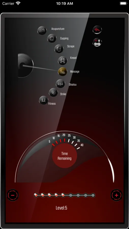 This is a massage application that can help you relieve fatigue. It can be used to control the mode, intensity, and duration of the massage device.