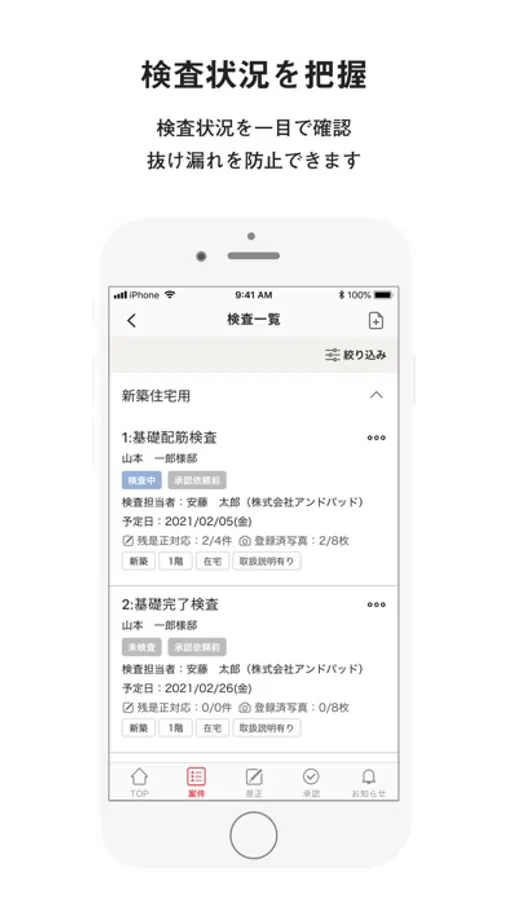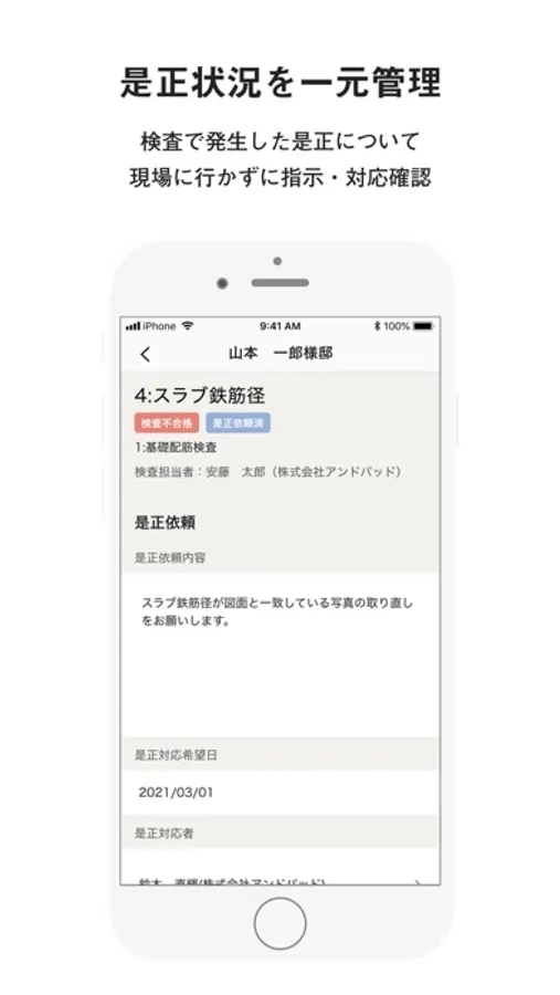 ・建築現場の検収業務と検査業務を行うための専用アプリです。