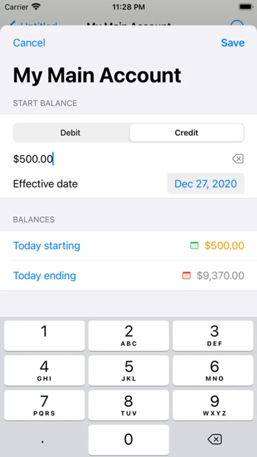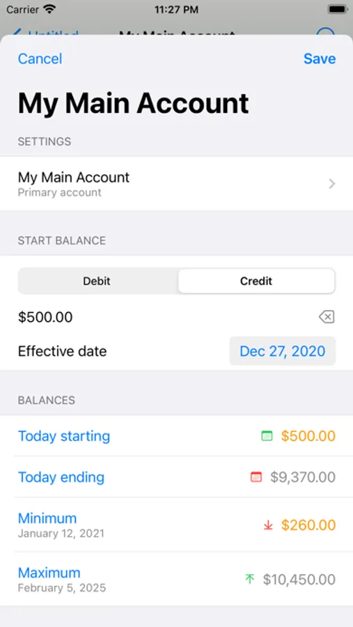 - Warning balance: Set a warning balance for an account and see at a glance when your balance is below it.
