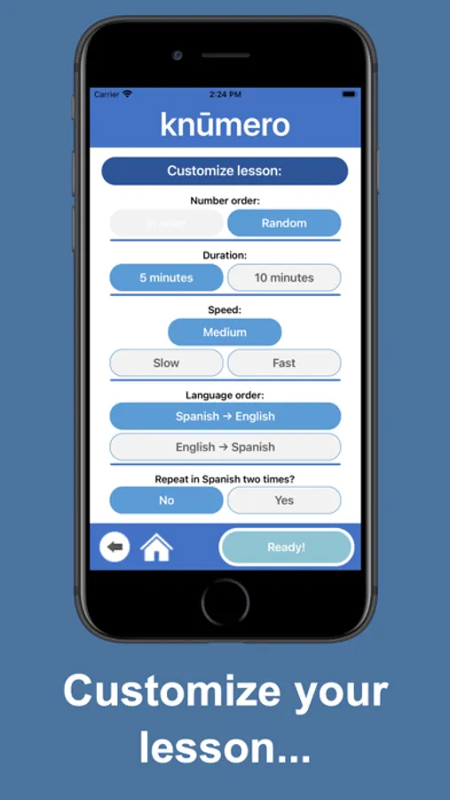 With knūmero you can create unlimited and fully customizable audio lessons that play numbers in both your new and native languages.