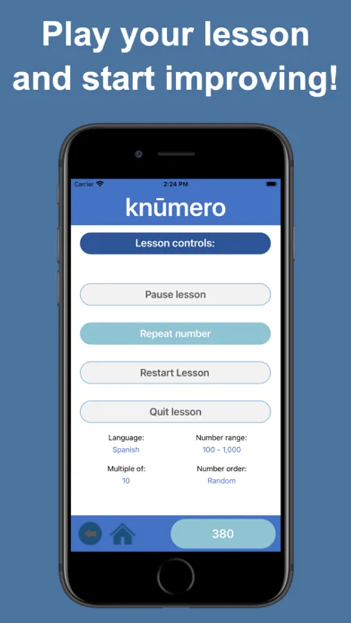 knūmero can play numbers in your new language two times for improved retention while allowing you to repeat any number as many times as you like.