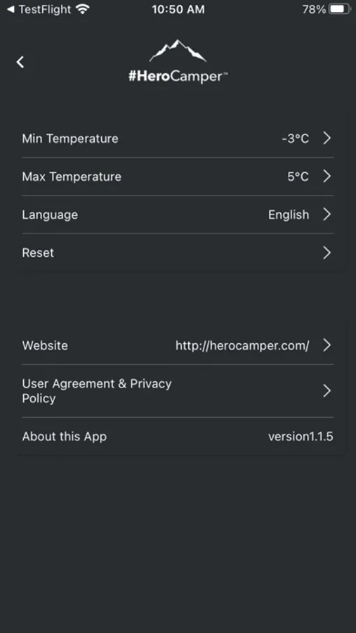 The app is used for controlling #HeroCamper Cooling Boxes via Bluetooth connection. On the app you can control temperature, turn on/off the device, set childproof lock, etc.