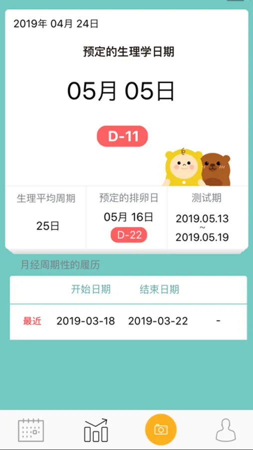 -APP can display next menstruation expectation date and ovulation day only by setting latest physiological day and menstrual cycle.