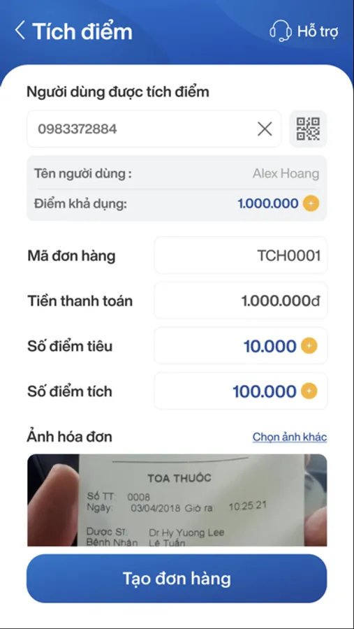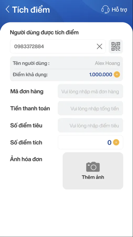 - Tích điểm, tiêu điểm: cho phép nhân viên cửa hàng thực hiện tích điểm, tiêu điểm cho khách hàng trên từng giao dịch một cách thuận tiện, nhanh chóng. Ứng dụng đã tích hợp phần quét barcode định danh người dùng nhanh chóng, tiện lợi