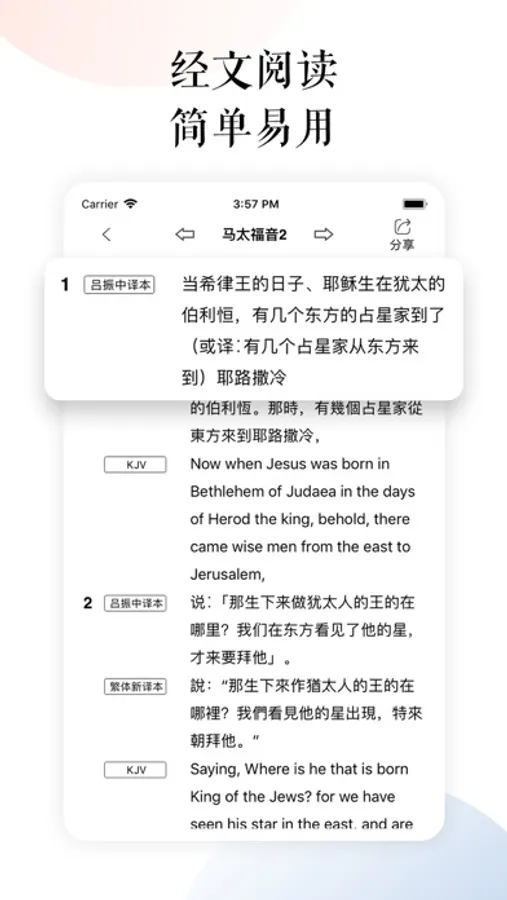 *便于查找,可简单的在新约与旧约之间切换查找不同版本圣经话语;