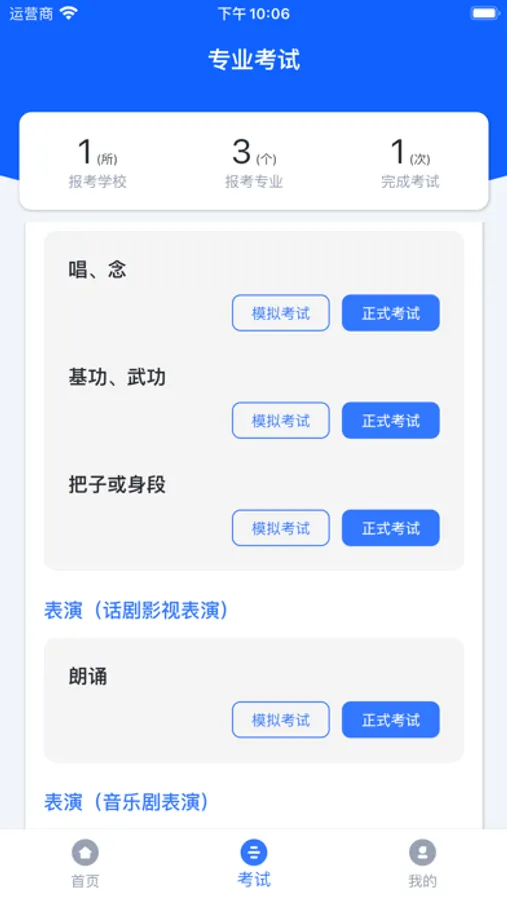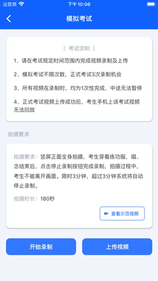 用于艺术高校招生考试,艺术类考生根据考试要求,通过App离线录制考试视频,并上传到高校考试服务平台,完成考试。